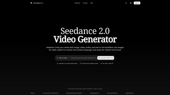 Seedance 2.0 effortlessly transforms your text prompts and images into stunning cinematic videos using advanced AI technology. Whether you want to create engaging content for marketing, social media, or storytelling, Seedance 2.0 is here to help. Try it out today with free credits!