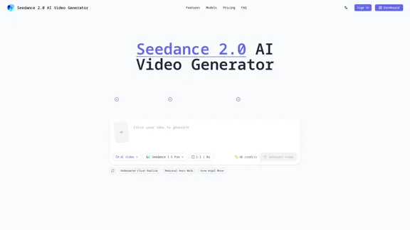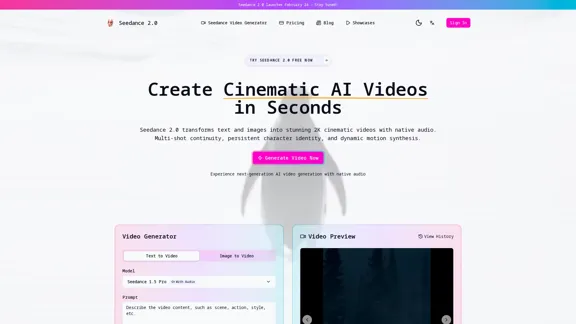 Seedance AI is your go-to AI video generator, utilizing the advanced Seedance2.0 technology to create high-quality, realistic short videos effortlessly. Experience the future of AI video production, from prompt to publish, and unlock a new level of creativity.