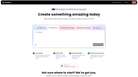 Create stunning web applications effortlessly with JDoodle.ai, your go-to no-code app builder designed for rapid prototyping, micro SaaS tools, landing pages, and beyond.