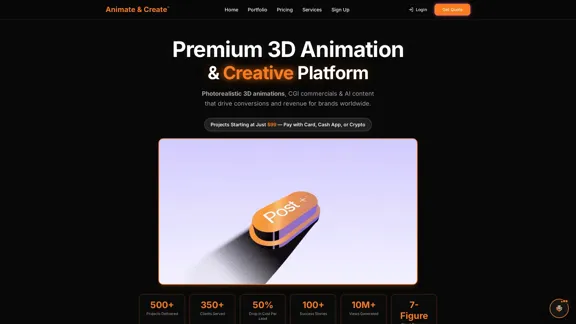 Welcome to your go-to 3D animation platform, where we specialize in creating stunning cinematic commercials, captivating product visualizations, and engaging brand storytelling. Let us help you elevate your brand with top-notch visual content that truly stands out.