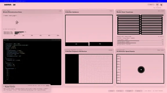 Erleben Sie Bitcoin wie nie zuvor mit Echtzeiteinblicken, die es Ihnen ermöglichen, jeden Tick zu sehen und zu hören. Entwickelt für Händler, die schnelle, unwiderrufliche Entscheidungen treffen müssen, bietet unsere Plattform eine detaillierte Mikrostruktur-Analyse, KI-gesteuerten Kontext und innovative akustische Kodierung.