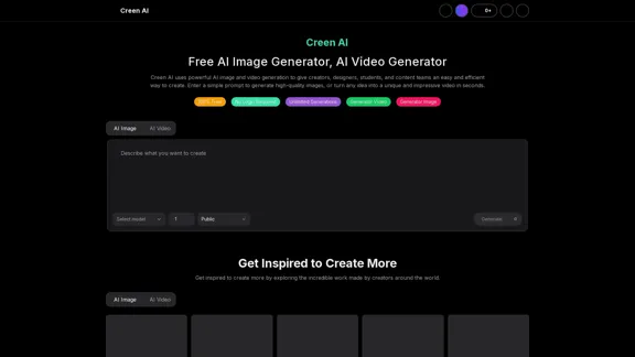 Explore Creen AI, a free and powerful platform for generating AI images and videos. Create stunning visuals, animate your artwork, and unlock endless creative possibilities with AI-powered tools.