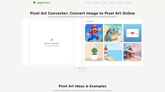 Discover our free pixel art generator that allows you to instantly pixelate your images. Transform your photos into stunning works of art, create game sprites, and dive into a world of creative pixel art ideas—all online and at your fingertips.