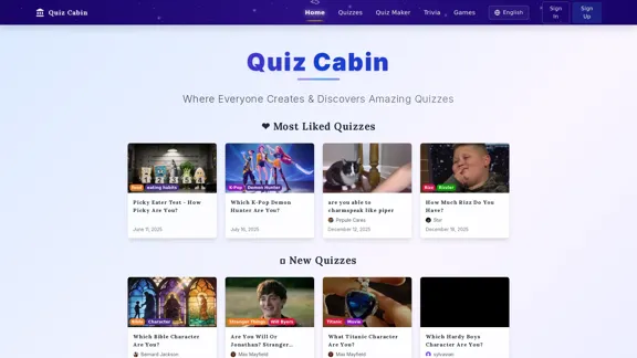 Quiz Cabin is your go-to place for personality quizzes, trivia challenges, and brain games. Join millions of users to create your own custom quizzes, discover your personality, and compete with others worldwide. And the best part? It's all free!
