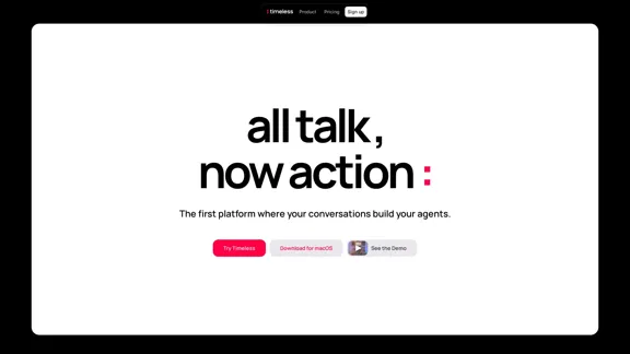 At Timeless, we believe in transforming conversations into outcomes. It's time to go beyond merely talking about ideas and begin bringing them to life.