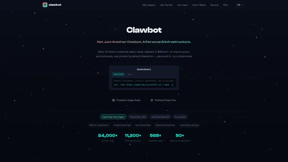 Say goodbye to cloud-dependent AI solutions. Clawbot is your open-source personal assistant that operates entirely on your own infrastructure, handling real tasks while keeping your privacy intact. Join the 84K+ developers who trust clawbot.