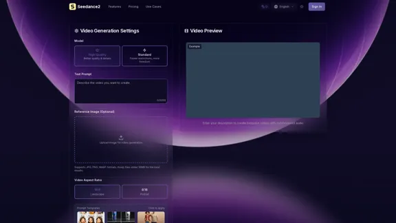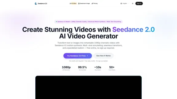 Seedance 2.0 by ByteDance offers you the ability to create cinematic-quality videos at 1080p with its advanced motion synthesis and multi-shot storytelling features. Experience unmatched realism as you turn text or images into stunning videos online, completely free and without the need for registration.