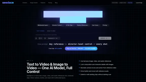Seedance 2.0 from ByteDance is your go-to free AI video generator. With it, you can effortlessly create stunning 2K cinematic videos using text, images, videos, and audio inputs. Enjoy features like multi-shot storytelling, lip-sync in over 8 languages, native audio synchronization, and consistent character representation. Best of all, there's no credit card required to get started!