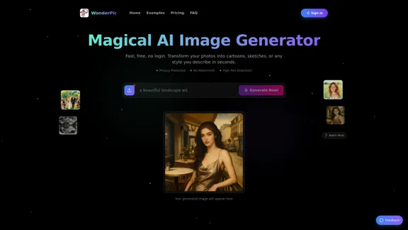 Elevate your photos effortlessly with our AI-powered tools. Enjoy a free online photo editor that offers a variety of effects like cartoon, watercolor, and sketch, along with skin tone adjustments. Experience instant results without any watermarks.