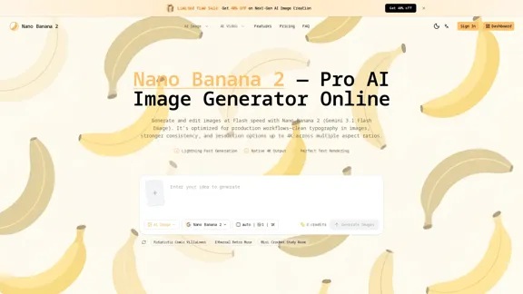 Nano Banana is your go-to platform for intelligent image generation and editing, powered by the latest AI technology from Google. With groundbreaking features such as character consistency, natural language editing, and multi-image fusion, it makes creative tasks a breeze. Whether you're looking to change outfits, transform scenes, or perform precise local edits, Nano Banana keeps the original essence intact, opening up a world of endless creative possibilities.