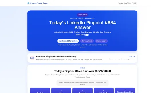 Today's LinkedIn Pinpoint answer is Puzzle #684 — updated daily with spoiler-free hints, explanations of clues, and solutions that maintain your streak.