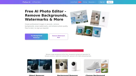 Edit your photos effortlessly with our online AI tool. Remove backgrounds, eliminate watermarks, enhance quality, and erase unwanted objects quickly and easily. Best of all, you can get started for free with no sign-up needed!