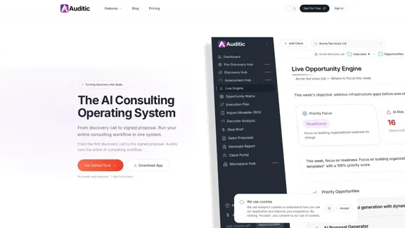 AI-powered discovery and consulting platform. Structured interviews, opportunity scoring, ROI validation, and proposal generation.