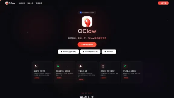 QClaw is Tencent's personal AI assistant designed for remote work via WeChat. It helps you organize files and execute complex tasks without any programming skills required. Suitable for various scenarios including office work, creative projects, and development, it continually learns and adapts to better understand your needs.