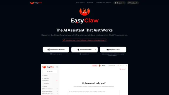Discover the only native EasyClaw app designed for both Mac and Windows. With a secure sandbox and no configuration needed, you can say goodbye to the terminal. Take control of your AI agent easily and securely right from your desktop.