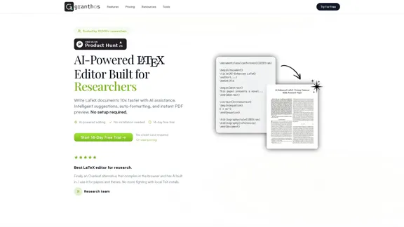 Easily edit and compile LaTeX documents online at no cost. With AI-powered writing features, GranthOS serves as a great alternative to Overleaf. There's no need for installation—simply write your papers, theses, and reports directly in your browser.