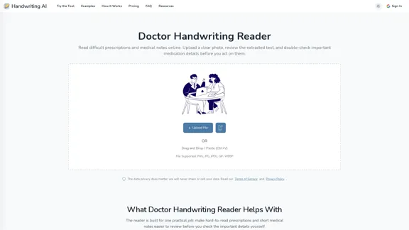With Doctor Handwriting Reader AI, you can easily decode those tricky handwritten medical prescriptions and notes. Just upload a photo, and you'll receive clearer, more readable text, making it simpler to understand what your doctor has written.