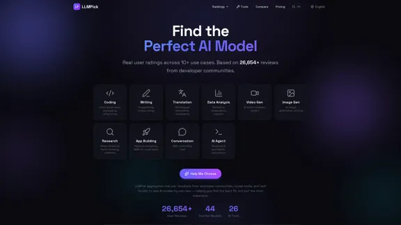 Discover the ideal AI model tailored to your needs. Our rankings are derived from over 26,000 genuine user reviews from developer communities. You can easily compare pricing, benchmarks, and authentic feedback across various areas like coding, writing, translation, and more.