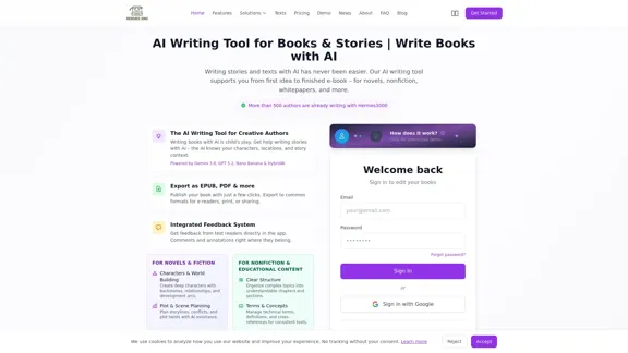 Crafting stories has never been easier with Hermes 3000. This top-notch AI writing tool is designed to support you in your book writing journey, whether you're diving into fiction, nonfiction, or educational content. Let your creativity flow with the help of advanced AI technology.