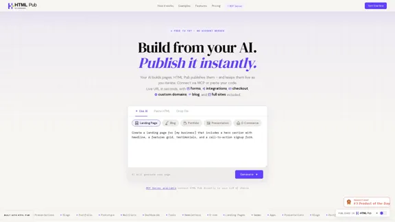 Create stunning websites and landing pages effortlessly with our AI technology. You can publish in just 10 seconds and enjoy free hosting, checkout options, forms, analytics, and custom domains—all without needing to write a single line of code.