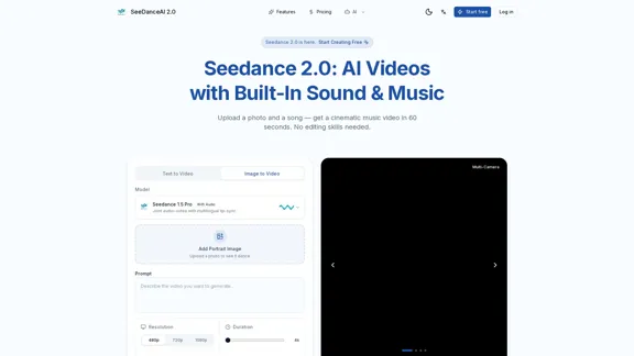 Craft stunning 2K cinematic videos effortlessly with Seedance 2.0 from ByteDance. Enjoy features like native audio synchronization, multi-shot consistency, and support for multimodal inputs. Experience it for free today!