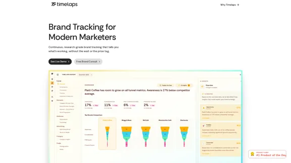 Timelaps offers a continuous, research-grade brand tracking solution powered by AI. Our dashboard collects insights from over 4000 real consumers within your target demographics, assisting you in understanding the effectiveness of your brand campaigns.