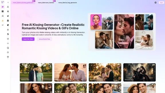 With AI Kissing Generator, you can effortlessly create realistic kissing videos online for free. Just input some text or upload photos, and watch as romantic scenes come to life in an instant. Give it a try!