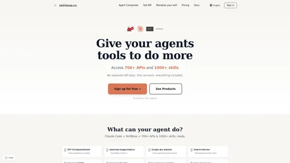 SkillBoss provides a unified API for Claude Code, OpenClaw, Cursor, and custom agents, offering a comprehensive suite of tools for models, search, scraping, voice, video, email, payments, and deployment.