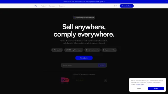 Cleo Comply simplifies product regulatory compliance, allowing global brands to confidently navigate the complex landscape. Our AI-driven platform encompasses 106 countries and more than 3,700 regulatory sources, keeping you updated on important regulations such as CSRD, AGEC, GPSR, and the Digital Product Passport.