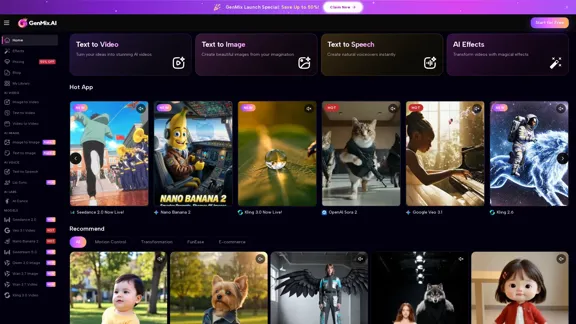 Welcome to GenMix, your go-to AI platform that brings together over 30 powerful models like Sora 2, Kling 2.6, Veo 3.1, and Flux. With GenMix, creating stunning videos, captivating images, and professional voiceovers is easy. Everything you need is right here, all in one place.