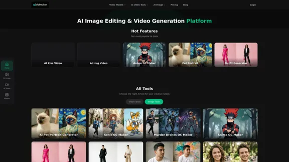Dive into the world of AI creativity with aividmaker. Explore tools like Sora 2, Veo 3.1, and Seedance 2.0 to generate captivating videos and images. Whether you're looking to create virtual try-ons, design your own anime characters, or craft adorable pet portraits, we've got you covered. Best of all, it's free to try!