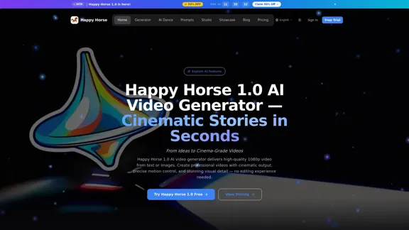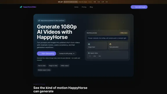 With HappyHorse, you can effortlessly create stunning 1080p AI videos online. Transform your text prompts and images into cinematic clips, engaging social creatives, product videos, and quick short-form content.
