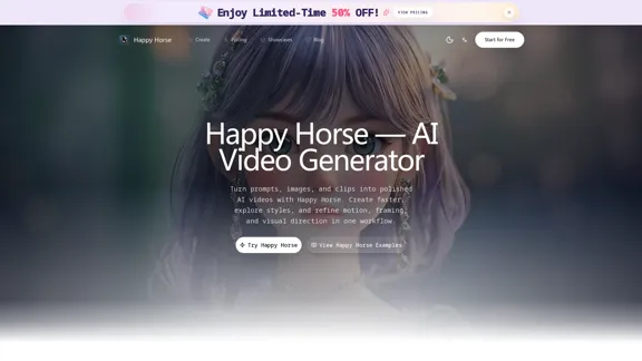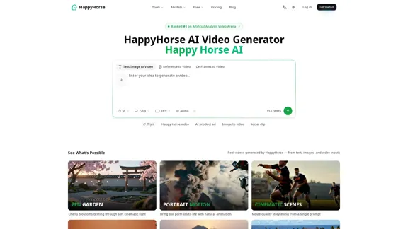 Create AI videos from text and images with Happy Horse AI — ranked #1 in the Artificial Analysis Video Arena. Start for free online.