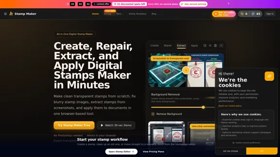 Stampmaker online is your go-to tool for crafting personalized stamps. Whether you want to create a new design, enhance old stamp images, or extract transparent seals, our platform makes it easy. Plus, you can seamlessly apply your creations to PDFs, receipts, and invoices.