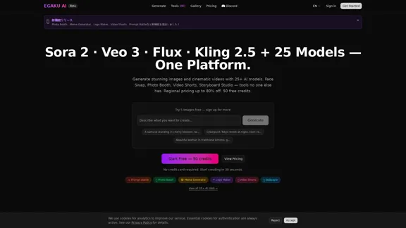 Create amazing AI videos and images in just a few seconds. With features like text-to-video, image-to-video, virtual try-on, and photo editing, you can get started at no cost, all from your browser.
