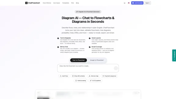 ChatFlowchart is your go-to AI tool for transforming simple English into a variety of diagrams, including flowcharts, tree diagrams, probability trees, and ERDs. With our AI diagram generator, you can easily chat to create, edit, and export diagrams. Enjoy the convenience of creating diagrams online, with a free trial and no signup required.