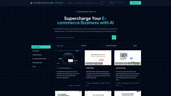 ecomtoolai.com serves as a go-to resource for e-commerce professionals. Explore a variety of AI tools designed to enhance your dropshipping, marketing, customer support, product photography, and store automation efforts, all aimed at boosting your sales and improving efficiency.