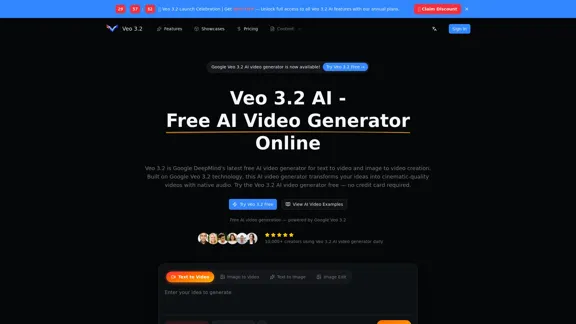 Veo 3.2 is a free AI video generator that allows you to create impressive content by transforming text and images into engaging videos. Experience the capabilities of Google Veo 3.2 and start creating your videos online today, at no cost!