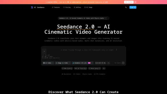 AI Seedance 2.0 是您制作令人惊叹的 15 秒电影视频的首选 AI 视频生成器。凭借基于物理的音频同步、2K 分辨率以及编织多镜头叙事的能力,创作引人入胜的内容从未如此简单。今天就试试 AI Seedance 2 吧!