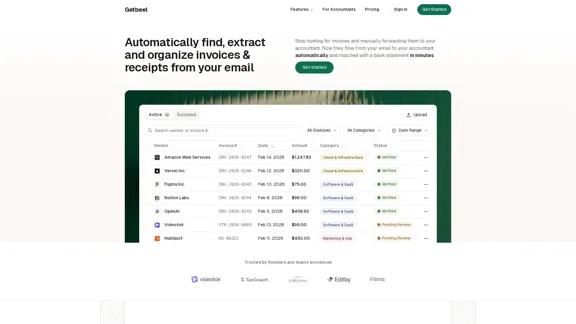 Getbeel 无缝集成您的 Gmail,自动提取每一张发票。它在创始人和品牌中备受喜爱,能够轻松收集发票、跟踪支出,并每月节省宝贵的时间。