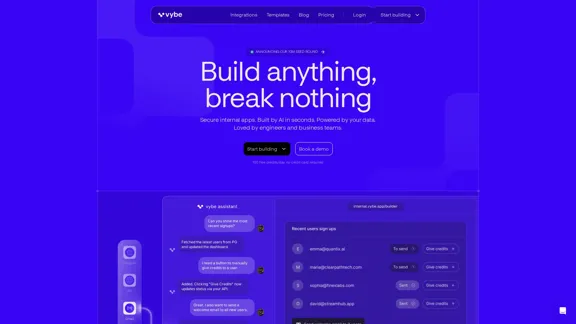 关键词: Vybe, 内部应用, 自然语言, 安全, 生产就绪, 真实数据, 身份验证, 角色管理, 部署, Postgres, Salesforce, Jira, 集成, 模板, 内部工具, 快速开发, 用户友好