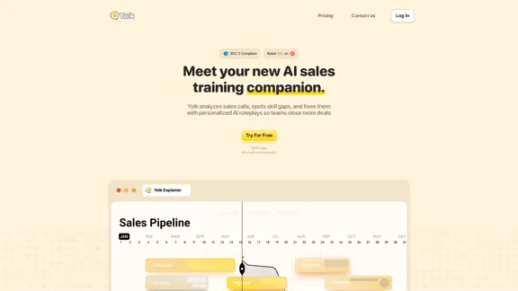 销售领导者花费数小时手动审查记录并猜测销售代表需要帮助的地方。Yolk 解决了这个问题。它分析真实通话,找出差距,并构建感觉像真实买家的定制 AI 角色扮演。销售代表在真实场景中练习并获得即时反馈,而管理者则无需阅读记录即可获得清晰的洞察。更快的上手速度,更高的胜率,以及轻松扩展的辅导。