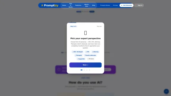 Transformiere eine einzelne Frage in Expertenlevel-Prompts, die auf 11 verschiedene KI-Tools zugeschnitten sind. Mit 44 einzigartigen Personas, über 130 Vorlagen, Prompt-Bewertung, Prompt-Kette und einem intelligenten Tool-Router ist der Einstieg völlig kostenlos.