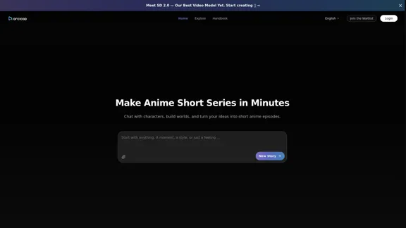Entdecken Sie Arcloop AI, Ihren ultimativen kreativen Begleiter zum Erstellen von beeindruckender Anime-Kunst, Videos, Charakteren und Storyboards. Führen Sie Gespräche mit Charakteren, brainstormen Sie frische Ideen und erwecken Sie Ihre filmischen Visionen mit unseren professionellen Werkzeugen zum Leben.