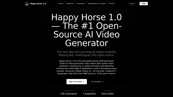 Happy Horse 1.0 est une plateforme de génération de vidéos alimentée par l'IA qui convertit du texte et des images en vidéos, conçue pour les créateurs et les équipes.