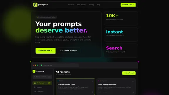 Mots-clés : Promptsy, générateur de prompts, bibliothèque de prompts, sauvegarder des prompts, organiser des prompts, gestion des versions, partager des prompts, prompts d'intelligence artificielle, bibliothèque de prompts personnelle, outil de gestion des prompts.