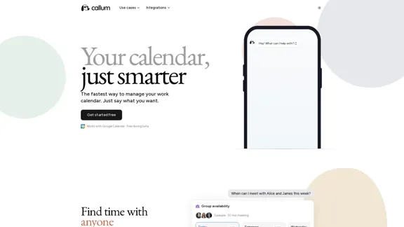 Mots-clés : Callum, assistant de calendrier AI, collaboration d'équipe, Google Calendar, réunions multiples, partage de disponibilité, planification, programmation en langage naturel, gestion de réunions, intégration CRM, intégration ATS, application CSM, application Web, application iOS, Slack, ChatGPT, outil de gestion de calendrier.