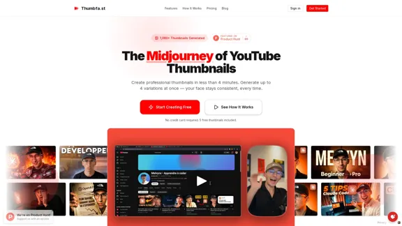 Mots-clés : Thumbfa.st, miniatures YouTube, génération AI, miniatures personnalisées, créativité visuelle, design abordable, Midjourney, itération rapide, inspiration, reconnaissance faciale, outils de design, marketing vidéo, contenu visuel, édition photo.
