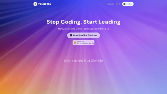 Mots-clés : Tonkotsu, agent de programmation, gestion d'équipe, gestion de documents, interface claire, essai gratuit, accès anticipé, outils de programmation, gestion de logiciels, interface utilisateur