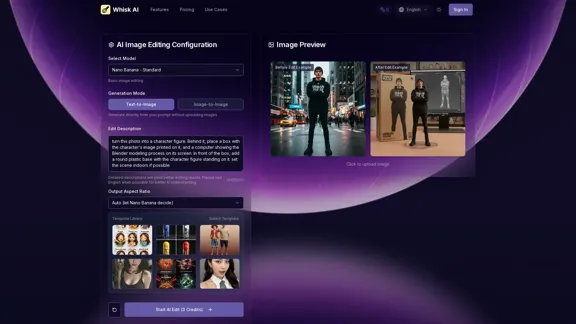 Découvrez la puissance de Banana AI, votre outil incontournable pour transformer des idées en visuels époustouflants. Avec des fonctionnalités telles que la conversion de texte en image, l'image à image, le inpainting, le outpainting et le transfert de style, le tout propulsé par l'image Flash de Google Gemini 2.5 (nom de code 'Nano Banana'), créer et éditer des images n'a jamais été aussi facile et amusant.